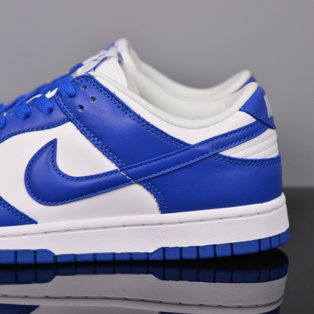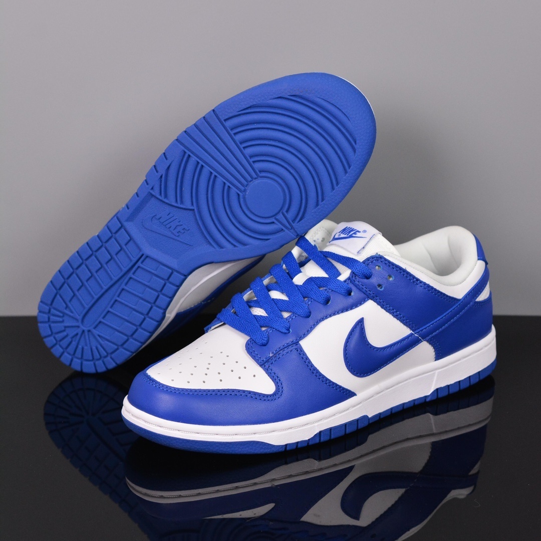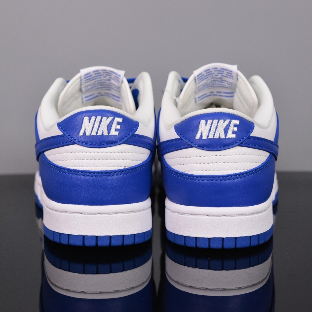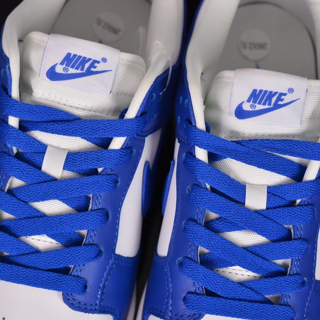 Comemorando o 35º aniversário da silhueta, o Dunk Low Retro SP ‘Kentucky’ empresta um esquema de cores familiar da lendária série ‘Be True to Your School’ da Nike de 1985. O tênis de basquete de cano alto feito originalmente para a Universidade de Kentucky é atualizado parte de baixo versátil, com uma parte superior de couro branco com sobreposições em azul royal. Uma língua de malha respirável é coberta com uma etiqueta Nike tecida, complementando um segundo logótipo da Nike na aba do calcanhar.