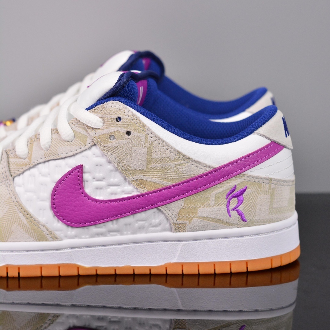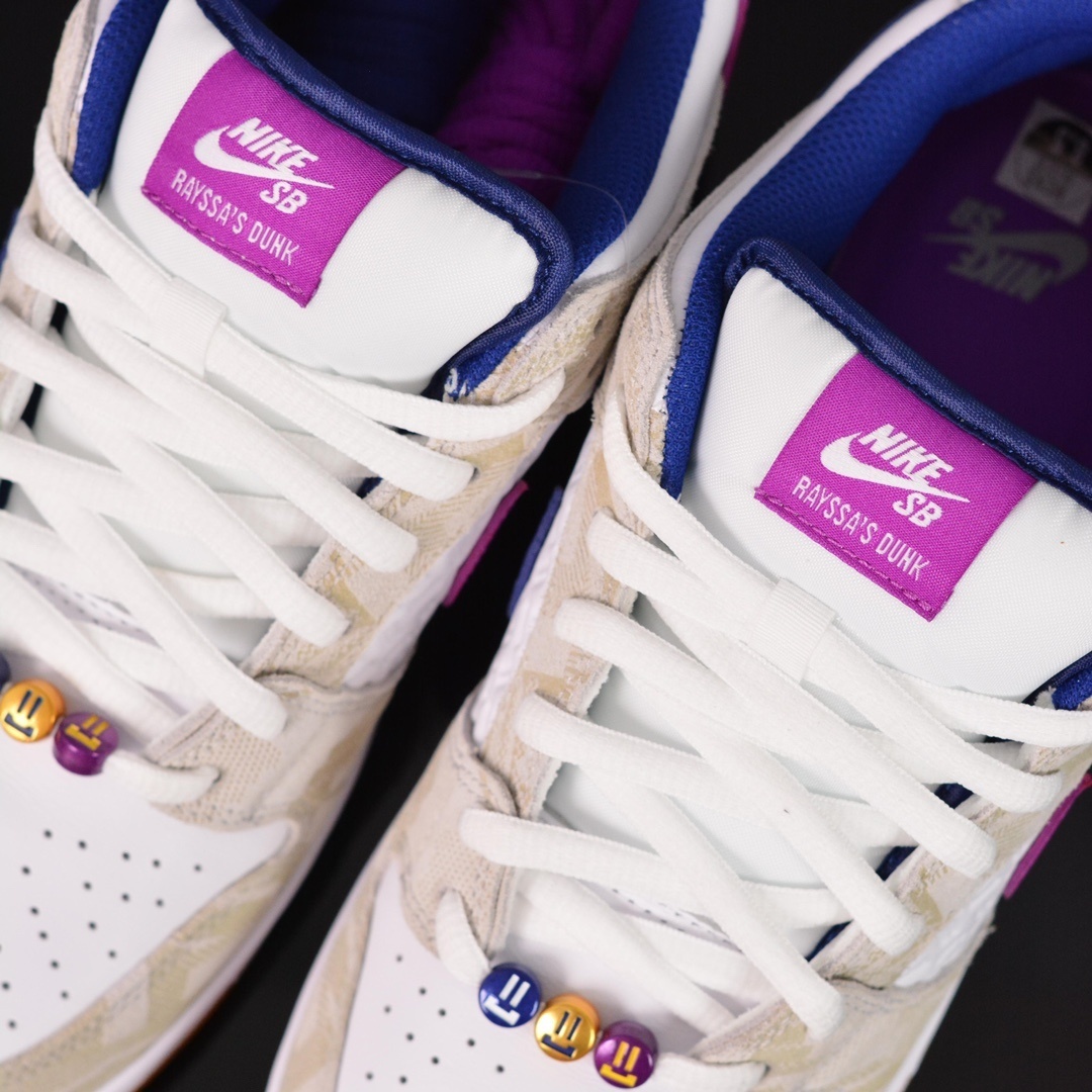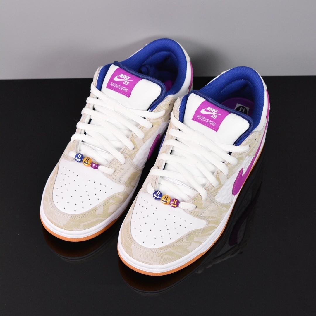 A partir de suas cores favoritas e designs de concurso, ele define o cenário com materiais e elementos gráficos pessoais da jornada de Rayssa. Apresentando detalhes em relevo, ilustrações de rosto sorridente e um logotipo exclusivo no calcanhar e na palmilha, o Rayssa Dunk Low é um símbolo de possibilidade, determinação e a chegada do futuro do skate.